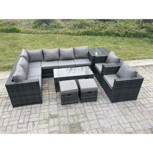 This deluxe rattan sofa set is a great addition to patio or garden, made of high quality PE rattan and durable galvanized steel construction for sturdiness and long lasting.Durability ,and can be put outdoor all year round. Perfect set to sit round with your family and friends. Set Dimensions: • 1 x Single Arm Three Seater Sofa Left Hand : 167W x 65D x 66H cm • 1 x Single Arm Three Seater Sofa Rightt Hand : 167W x 65D x 66H cm • 1 x Oblong Coffee table: 105L x 50W x 48H cm • 1 x Side Table :65W x65D x66H cm • 2 x Fully Assembled Stool: 40L x 40w x 34H cm • 2 x Chair :74W x65D x66H cm Dark grey mixed rattan with dark grey fabric .Color may some difference due to light or monitor .we are unable to return the item due to color problem . Items Comes Flat Packed And Easy Assemble,Sturdy Galvanized Steel Tube Metal Frames With Powder Coating To Prevent The Rust Flat PE Rattan Completely Made By Hand, 5mm Thickness Transperant Tempered Glass With Sucker On Surface To Prevent Sliding Low
