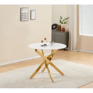 Elevate your dining space with the perfect blend of luxury and contemporary design. The Round 4-Seater Dining Table is a stunning centrepiece designed to bring modern sophistication and timeless elegance to your home. Featuring a white marble-effect 10mm tempered glass top and striking gold-finished metal legs, this table offers both durability and style. Fairmont Park