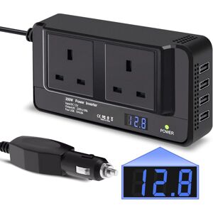 Powerful 200W Car Inverter with Versatile Charging Ports: This 200W car power inverter features 2 AC outlets and 4 USB ports (2x 5V 2.4A and 2x QC3.0 fast charging), providing up to 200W continuous power (peak output 400W). Ideal charging for iPhones, iPads, laptops, tablets, and camping equipment on the go. Real-Time Monitoring with LED Display & Multiple Protections: Equipped with an intelligent LED display, this car inverter shows real-time input voltage for easy monitoring. Built-in fuse protection shields your devices from short circuits, undervoltage, overcharging, overvoltage, overload, and overheating, ensuring safe and reliable operation. Compact & Lightweight for Easy Portability: The inverter is compact (16.8x8.3x4cm) and lightweight (0.5kg), making it perfect for travel. The 60cm/23.6in power cord provides flexibility for use in all areas of your car, truck, or RV. It also features a quiet, efficient cooling fan for long-term, hassle-free operation. Broad Compatibility