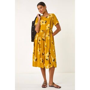 Floral Smock Midi Dress from Roman. Get in the mood for Spring/Summer with this delightful floral midi smock dress. Perfect for sunny days, this dress features a flattering round neck and easy short sleeves. The smock style ensures a comfortable and breezy fit, making it ideal for casual days out. Pair with sandals and a denim jacket for a laid-back, chic look that will take you from day to night effortlessly. Roman Women's Floral Smock Midi Dress in Yellow Size: 10