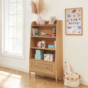 Alephonia children's bookcase - MDF and particle board structure - Wood effect decorative paper covering - 3 shelves - 1 rattan cane drawer - 4 solid wood legs - Product dimensions: L80 x D30 x H140cm - Product weight: 25 .1kg - Package dimensions: L131 x D36 x H19.5cm - Package weight: 27.1kg 17 Stories