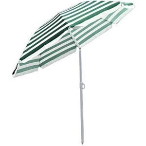 Product Description Beach Parasol; This outdoor parasol is great for those sunny days when you want to relax in the great outdoors with some much-needed shade. Ideal for any setting including the beach, villa, garden or courtyard Features: Lightweight; easy to carry and use Tilt mechanism provides an adjustable angle to shield you from sun Parasol height can be adjusted from 130 to 195cm with flexible stand Made of durable steel frame and 140g/m2 fabric Specification Condition: Brand new Colours available: Green-White Style: tilting beach parasol Material: durable 140g/m2 fabric Rib: 8 Pole: 19/22mmx0.5mm Arc Length: 200cm Diameter: 180cm Height: 130-195cm