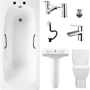Complete Steel Bath Suite 1500mm Vercelli Toilet and Basin Inc Xtreme Taps Complete bathroom suite, including a Roca (unbranded) 1500mm steel enamel bath with grips and anti slip bottom and Styrene front bath panel. With Roca (unbranded) Vercelli toilet & Basin Set. Including Francis Pegler Xtreme basin mono and bath filler tap set with chrome click-clack wastes. Roca (Unbranded) Steel Enamel bath 1500 x 700mm with Grips Anti-Slip Surface Roca (Unbranded) Steel Enamel bath 1500 x 700mm with Grips Anti-Slip Surface 2th Steel bath with grips & anti slip effect on bottom These baths are made by Roca - but dot not have the brand stamped on the product 1500 x 700mm 2 tap hole - pre-drilled Includes 2 grips Made from standard gauge vitreous enamel steel Timeless, conceptual & functional design Low tub depth enables comfortable & safer entrance as well as water saving With 5 years manufacturer's warranty 100% recyclable Heavy duty performance Resistant to surface impacts, scratch abrasion,