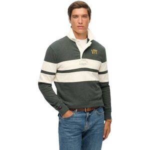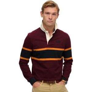 We have taken the classic silhouette of rugby-style tops and created a statement piece to accompany your casual wardrobe. The Vintage Athletic Stripe Rugby Top is a vintage icon which is a callback to the vintage legacy of rugby a callback to both British sport and American adaptation telling a story with your timeless style. Crafted with a sumptuously soft feel and a comfortably relaxed shape for effortless confidence all season long.Features:- Relaxed fit the classic Superdry fit. Not too slim not too loose just right. Go for your normal size.- Rugby collar with three-button fastening.- Long sleeves.- Ribbed cuffs.- Split side hem.- Embroidered Superdry logo.- Signature Superdry patch on cuff.Specifications:- Material: 100% Organic Cotton- Weight: 300 g