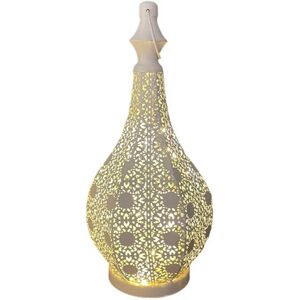 [VINTAGE DESIGN]This Moroccan battery light lamp features a metal full body cutout with built-in fairy string light bulbs. The warm light casts beautiful patterns or table. Gorgeous appearance, attractive openwork flower pattern, provides you with modern and garden decoration. Add warmth and comfort to your yard and home. [HANGING & SITTING]As a home decoration, this lamp has a solid and stable base, which is very suitable for your desktop. There is a lifting ring on the top to hang it where there are hooks. It can be used as a wall decoration. It is perfect to or in your front porch, living room, dining room, wedding, courtyard, party or anywhere you want to light up. [SAFE TO USE]The cordless lamp with built-in battery compartment are safe, child-friendly and easy to carry. There are 3 AAA battery powered (NOT included) and no additional electrical connections are required. Easy to install and carry, you can place the lamp anywhere you want to . perfect for families with pets or