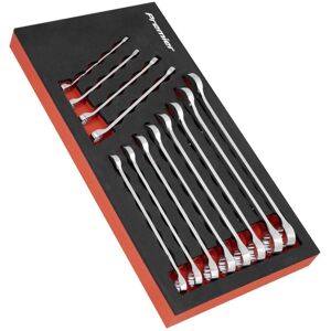 Tool Tray with Combination Spanner Set. Suitable for selected Superline PRO® and Premier tool chests. Features & Benefits: • Contents: 7, 8, 9, 10, 11, 12, 13, 14, 15, 16, 17, 18, 19mm. • Tray Size (W x D x H): 176.5 x 397 x 55mm. • Lifetime guarantee*. • Model No. TBT01 Specifications: Model No TBT01 Brand: Premier Contents: 7, 8, 9, 10, 11, 12, 13, 14, 15, 16, 17, 18, 19mm Nett Weight: 1.28kg Tray Size (W x D x H): 176.5 x 397 x 55mm
