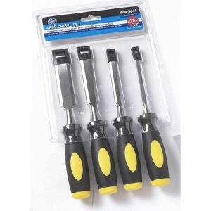 BlueSpot Tools 4 Piece Wood Chisel Set is manufactured from drop-forged and heat-treated steel for increased durability. Precision machined bevelled edges for accurate striking. Ergonomic plastic handles for increased comfort. Sizes: 1/4in (6mm), 1/2in (12mm), 3/4in (19mm) and 1in (25mm)Additional Information:• Chisel Type: Bevel Edge• Set Qty.: 4