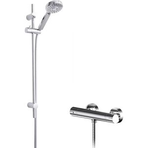 Current Round Bar Valve & Water Saving Slide Rail Kit Shower Set - Chrome - Balterley Manufactured from high quality brass, with thermostatic temperature control in a round design to complement modern bathroom designs. Matching brassware available in the Current range from Balterley for a consistent bathroom design. Create a contemporary shower with this round shower set. Each component is separate, giving you flexibility in the placement for your shower. Product Highlights Contemporary round design Light Chrome finish Bar valve & slide rail kit Thermostatic temperature control Manufactured from brass Manufacturer's guarantee: 5 Year