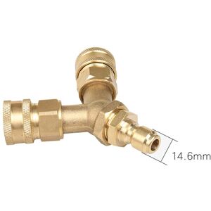 Application 1.This Two- Tee Coupler converts a one- pressure washer into a two- system. This is a good way to power wash on a big job if you don't have 2 machines. 2. Quick connect this Branch Tee onto the pressure washer outlet, then connect two pressure washer hoses to either end of the 2- splitter. Allows for 2 pressure washer users simultaneously. Tip perfect for pressure washers higher than 4.0 GPM. When running two simultaneously, this coupler splits the GPM between the two and it is necessary to change the pressure washer nozzle to achieve desired results. Working pressure is up to 5000 PSI. Made by brass. Y shape tee splier joint Fitting: 1. 3/8 inch quick coupler plug + 3/8 inch quick coupler socket 2. Y shaped. 3. Made of brass Tee Spliter Adapter With 3/8 inch Quick Release Connector For High Pressure Washer. Color: yellow Material: copper Package Contents: 1 x Pressure Washer Tee Only the above package content, other products are not included. Note: Light reflection and