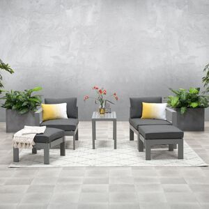 The 5-piece lounge set is a nice and compact lounge set with good seating comfort. The aluminium is of high quality and gives this balcony set a modern appearance. The set consist of a side table and four seating elements. You can place the elements in any position to create the lounge set of your liking. Ebern Designs