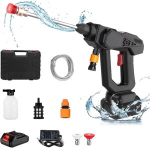 【Deep filtration of impurities】The portable high-pressure cleaning machine has a self-priming system and is not limited by water sources. The built-in stainless steel fine filter can effectively and deeply filter impurities in the water. [Switchable water type] The spray water type can be freely switched to three water types: high-pressure direct spray, fan spray, and shower spray (high-pressure direct spray without nozzle). It has a temperature protection function and will automatically shut down when overheated or overloaded, eliminating potential safety hazards. 【Cordless high-pressure cleaner】The cordless design allows cleaning to be carried out anytime and anywhere, so you don't need to look for a power outlet. The portable pressure washer uses a 24V battery to provide enough power for outdoor cleaning. 【Multiple uses】Suitable for garden watering, agricultural irrigation, car washing, household cleaning, and nooks and crannies that are difficult to clean manually. It is the most