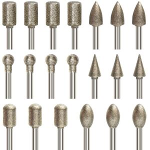 Variety of Shapes: The diamond drill bit set for rotary tools includes 20 pieces in total, designed in various shapes, such as spherical, pointed cone, cylindrical, oval, bullet, flat rectangular, etc. Different models and a wide range of shapes. Will meet your different needs. No matter what shape you need to engrave or polish, our diamond drill bit set can meet your needs. Multifunctional: Diamond drill bits are ideal for home decoration and crafts, and are good helpers for grinding, grinding, drilling, cutting, engraving, etc. Capable of engraving on a variety of materials, including: tiles, ceramics, marble, granite and other hard materials. In home decoration or crafts, diamond drill bits are an essential tool. It can engrave a variety of hard materials, showing exquisite craftsmanship. Material: Diamond drill bits are made of reliable quality diamond particles, thick and durable, wear-resistant, high hardness, impact resistant, and durable enough for fine detail work. In the