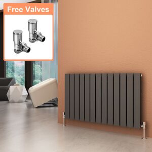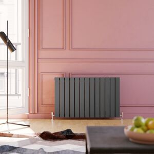 Horizontal Anthracite 600x988mm Designer Radiator This astonishing anthracite 600 x 988 mm horizontal flat panel radiator can become a reflection of your home's interior design,stylish and efficient that will inspire as much as they warm, Also it has a super heat output,which gives maximum efficiency when it comes to keeping your house warm,even in the coldest months. Product Features: Designer radiator with double panel Anthracite powder coated finish High heat output Fixing includes: wall brackets,plug and vent Please note: This item includes radiator valves Size may vary due to manufacturing process by +/-20mm if the stated size Dimensions: Height: 600mm Width: 988mm Accreditations & Testing: Material: Low carbon steel Manufactured in accordance with BS EN 442 Registered: Complies with ISO9001:2008 Pressure tested to 10 bar / maximum working pressure 7 bar Suitable for all UK central heating systems