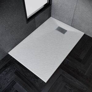 ELEGANT White Slate Effect Lightweight Slate Shower Base Size: 1200x800x30mm,Extra flat,Surface or recessed installation. Lightweight slate,heat resistance,corrosion and wear resistance (SMC composites). Made from a patented mixture of resin and filler for super strength,with slate textured finish,an antibacterial and anti-slip gel coating,offers a soft and natural touch feeling Special hidden centre waste design,Matches shower tray covering and long lasting to prevent stains. Back of the tray has a net design framework supporting structure,for better weight endurance and durability. Waste is included,size:Ø90mm.materail:ABS. Kit Content : Shower Tray free 90mm waste trap Stainless steel drain cover Dimension Waste Trap