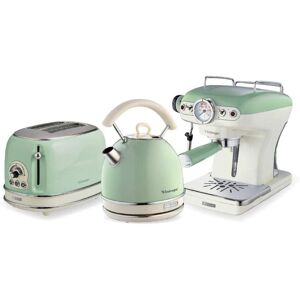 Kettle with a vintage design that recalls old-fashioned shapes, essential to taste moments like breakfast or tea break at their best. Equipped with removable and washable scale filter, cold surfaces, an ergonomic handle with soft touch finishing and auto-off system, it's an essential ally in every kitchen. 2-slice vintage toaster without pliers to toast simple slices or filled sandwiches, with auto eject and removable crumb tray, 6 levels of browning, cool touch sides and defrosting, heating and cooking function.