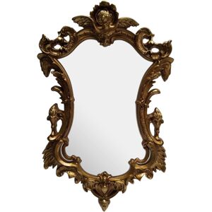An imposing statement piece, this wall mirror is a highly decorative object suited to grand living rooms or hallways. It is intricately detailed, from the two flanking flambeaux to the angelic form at the apex. With its rich gold colour it is suited to coordination with metallic accessories and textiles. This product will be shipped to your address with our premium delivery service to ensure you are fully satisfied with your purchase. As a result, this will slightly increase delivery time.