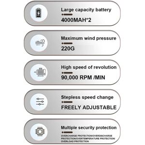 1. Powerful Performance: The Brushless Air Duster operates at an impressive 13000RPM, providing a strong airflow that effectively removes dust and debris from your computer keyboard, car , and other delicate surfaces. 2. Versatile Cleaning Tool: This Electric Air Blower is perfect for various applications, including cleaning electronics, vehicles, and hard-to-reach areas, ensuring a thorough clean with its innovative Jet Fan design. 3. Convenient Compatibility: Designed to work seamlessly with 20V batteries, this Dust offers you the flexibility and convenience of cordless operation, making it easy to use anywhere without being tethered to a power outlet. 4. Eco-Friendly Solution: Unlike traditional canned air, our Brushless Air Duster is a reusable, environmentally friendly alternative that reduces waste while still delivering powerful cleaning performance. 5. User-Friendly Design: and ergonomic, this air blower is easy to handle and maneuver, allowing you to clean efficiently and