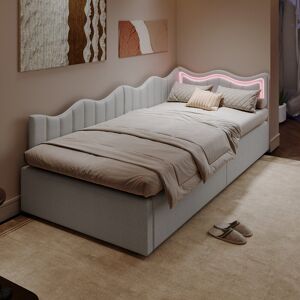Discover the magic of style and hidden storage with this imaginative ottoman daybed. By day, its unique, cloud-like silhouette and plush Teddy velvet offer a cosy sofa for lounging. But the real secret lies beneath: a powerful gas-lift mechanism reveals a vast, hidden storage space, perfect for keeping bedding, toys, and treasures neatly out of sight. As night falls, the remote-controlled LED light casts a gentle, colourful glow, transforming the space into a dreamy sanctuary for restful sleep. This piece is the ultimate all-in-one solution for bringing charm, order, and functionality to any guest room or child's bedroom. Fairmont Park Colour: White