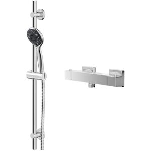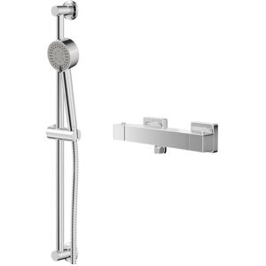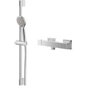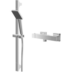 Model Number: WDB10210 Our Quattro Polished Chrome Square Thermostatic Bar Shower Valve is the perfect accompaniment to any slide rail kit to create your dream shower. This clever bar valve mixes hot and cold water to provide an excellent showering environment that every family member can enjoy. Combine this stylish modern bar valve with one of our slide rail kits to build the perfect shower to suit your needs and new bathroom design. Key features Stylish Chrome finish Thermostatically controlled Bottom outlet valve