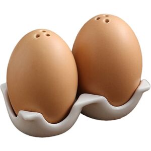 Decorative salt and pepper shaker set designed to 2 brown eggs White ceramic holder made to a 2-slot egg carton Each egg-shaped shaker features a flat base that helps keep the salt and pepper shakers upright Made of porcelain. Includes 1 salt shaker, 1 pepper shaker and 1 holder. Other items not included Color: brown+white Material: Ceramic Package Contents: 1 x seasoning jar Only the above package content, other products are not included. Note: Light reflection and different displays may cause the color of the item in the picture a little different from the real thing. The measurement allowed error is +/- 1-3cm.