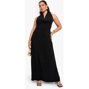 Elegant double-layered design with sophisticated ruching detail that flatters your figure Striking cowl neckline creates a dramatic focal point for evening occasions Sleeveless halterneck style showcases shoulders whilst providing comfortable support Gathered waist detailing creates a defined silhouette that complements curves Floor-sweeping maxi length offers graceful movement perfect for formal events Make a statement at your next special occasion with this show-stopping double-layered maxi dress from Boohoo. The sophisticated cowl neckline drapes beautifully across the dcolletage, whilst clever ruching across the bodice sculpts and flatters your curves. Style with strappy heels and a metallic clutch as seen on our model for a glamorous evening ensemble. The flowing maxi skirt creates an elegant silhouette that's perfect for weddings, formal dinners or graduation ceremonies. For cooler evenings, layer with a lightweight pashmina or tailored blazer. This versatile piece transitions effortlessly from daytime celebrations to evening affairs - simply switch your accessories to transform your look from sophisticated elegance to dramatic glamour.