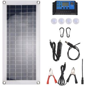 1. Made of high-quality materials, environmentally friendly, and delicate. It has a high conversion rate. 2. Dual-output solar panels with USB interface to meet any of your requirements. 3. Environmental protection and pollution-free, realizing the conversion of solar energy to electric energy 4. It has a wide range of applications and can be used in many places, such as automobiles and small household appliances. 5. A solar panel is a device that directly or indirectly converts solar radiation into electrical energy by absorbing sunlight. Compared with ordinary batteries and rechargeable batteries, solar panels are more energy-efficient and more environmentally friendly. Specification: Name: Flexible Solar Panel Solar panel voltage: DC12-18V Solar panel power: 15W USB output: 5V Number of USB ports: 2 Style:A With 60A controller Colour:black Material:plastic Package Contents: 1 * Solar Panel 1 * Alligator Clip 1 * Car Charger 4 * Accessories 1 * 60A Controller Only the above package