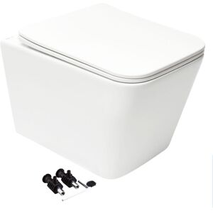 Rimless ECO Hidden Fixation Toilet & Seat Crafted from the highest quality heavyweight ceramic Luxury Matt Black finish Hidden fixation to maintain a minimalist aesthetic appeal Complete with matching slim sandwich toilet seat Soft-Close seat mechanism prevents slamming All necessary installation fixings pre-supplied Rimless Flush Technology No hidden spaces for germs & limescale to grow Simplified access points for easy cleaning Unique flush system with powerful vertical & horizontal water flow technique Enhanced bowl design for improved silent flush Good to Know Genuine UK Supplier Manufacturer Guarantee: 5 Years (Ceramic), 2 Year (Seat) Please make sure contact number(s) are correct to ensure tidy order fulfilment Crafted from the highest quality heavyweight ceramic Luxury Matt Black finish Contemporary design influenced by soft chiselled edges & gentle curvature Hidden fixation to maintain a minimalist aesthetic appeal Complete with soft-close, quick-release slimline seat No