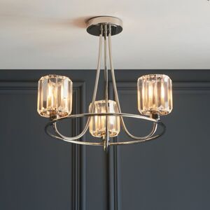 The Bernice semi flush ceiling light comes from Endon Lighting collection. This sophisticated fitting is finished in Bright Nickel and is completed by a decorative clear-cut glass shades that beautifully disperse the light. The Bernice light is going to be the centre of attention in your living room, dinning room or bedroom. Match with other products from the range to create a cohesive look. FEATURES: * Semi flush ceiling light * Bright Nickel finish * Decorative clear-cut faceted glass shade * Requires 3 lamps * Class 1 * Dimmable with suitable lamp / dimmer switch SIZE: * Diameter: 45.6cm * Height: 41cm LAMP: * Requires 3 x Small Edison Screw LED lamps - NOT INCLUDED