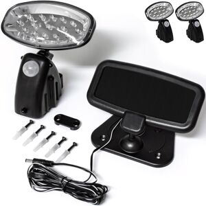 For garden, balcony, patio, garage or terrace! The 15 ultra bright LED-lamps ensure a bright light. The direction of the spotlight as well as the range (2m to 5m) are adjustable. There is no external power source necessary because of the available solar panel. The light is operated by the rechargeable battery. The light is perfect for your garden, balcony, patio, garage or terrace. Product advantages With 15 ultra bright LEDs Rechargeable battery Adjustable range Adjustable spotlight No external power source necessary Inclusive solar panel Quick and easy installation Perfect for your garden, balcony, patio, your garage or terrace Technical specifications: Material: ABS / PMMA LEDs: 15 (number), 10 Lux Solar panel: 6 V, 40 mAh Battery: 3.7 V, 500 mAh Adjustable range: 2 m - 5 m / 6.6 - 16.4 ft Light duration after motion detection: 25 s Length of the power cable: 5 m / 16.4 ft Light colour: White Colour: Black Scope of Delivery: 2x outdoor garden light 2x solar panel 2x assembly