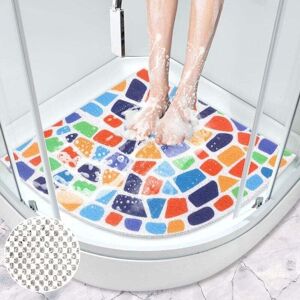 Durable: Made of high-quality materials, it has good stability, wear resistance, and breathability, effectively repellent dirt and stains and preventing mold. Comfortable Experience: The shower mat with the loofah surface provides comfortable support for your feet, keeps you away from the cold floor while bathing, and gives you a pleasant bathing experience. Powerful Drainage: The design with multiple drainage holes can drain water quickly, without worrying about water blockages and mold, and the shower mat without suction cups leaves no marks on the floor. Non-Slip Design: Slip resistance is the most important feature of the shower mat. Our shower mat uses a non-slip PVC backing to ensure it stays firmly attached to the floor without slipping, allowing you to shower with peace of mind. Easy to clean: The foam on the top is easy to rinse off. You can simply use the shower head to rinse or hang the mat to dry (bath mats dry quickly). Can be used in the bathroom, kitchen, and laundry