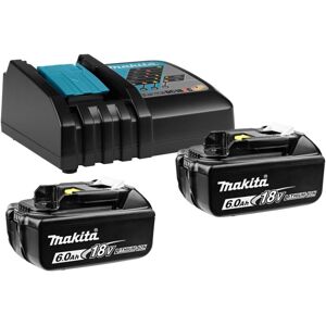 This package includes 2 x 6.0ah BL1860 batteries and a twin pack of Makita DC18RC fast chargers offering the ability to charge 2 batteries simultaneously. The DC18RC charges 14.4v and 18v Li-ion batteries in 22 minutes . Features of the Makita DC18RC: The DC18RC has a cooling fan and Active 3 Controls. This means that during the loading of the charging voltage, charging current, and temperature is held in the holes. The cooling system blows cool air into the battery. As a result, high temperatures occur in the battery, so that the battery life is extended, and the charging process is accelerated. When used in conjunction with charging adapter ADP03 this charger offers also the possibility of charging Ni-MH slide on batteries of 9.6V to 24V batteries. or when used with charging adapter ADP04 this charger offers the possibility to charge Ni-Cd and Ni-MH rod and block batteries of 7.2V to 18V batteries. DC18RC Charge Times Charge Time (1.5Ah): 15 mins Charge Time (3.0Ah): 22 mins Charge
