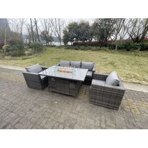 Set dimensions: 1 x 3 Seater Sofa: 177W x 65D x 66H cm 2 x Arm chairs size: 74L x 65W x 66H CM 2 x Corner Tables Size: 65 L x 65 W x 66 H cm 1 x Fire pit dining table: 140L x 80W x 70H cm Dark grey mixed rattan with dark grey fabric .Color may vary due to light or monitor .we are unable to return the item due to this problem .Please consult before purchase if you have requirment on color saturation. Fimous 5 Seater Outdoor PE Rattan Garden Furniture Set Gas Fire Pit Dining Table Gas Heater Burner in Dark Grey