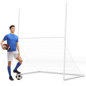Create a fantastic soccer practice area for your little football enthusiasts!!! This soccer goal set is a perfect sport choice for 6+ years old kids to play in the backyard. The soccer net and rebound net are made of weather-resistant PE material for a long-lasting service life. 5-level adjustable angle enables kids to promote different soccer skills. More importantly, solid structure and 4 U-shaped ground stakes allow it to stand steadily on the ground. You can freely set it up in lawn, backyard, park, etc. Get this soccer goal set and let your kids enjoy the soccer game immediately. Features: Suitable for lawn, backyard, beach, and more The distance between each height level is 4 cm 4 U-shaped ground stakes to firmly fix it into the ground Heavy-duty structure keeps it strong and not easy to collapse The soccer goal frame height is adjustable within 102-122 cm Great choice for kids over 6 years old to exercise and entertain 2-in-1 design meets the needs of soccer shooting and