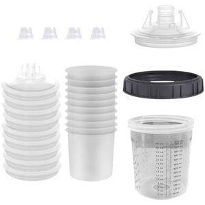 The disposable cup system is easy to use and maintain. This visible 810ml sprayer can be supplied with a scale allowing you to accurately measure the amount of paint required. Additionally, the set includes a hard cup with holder for added stability, 10 disposable cups, and 10 lids with filters to a smooth, clean . Best of all, the package includes 4 cup sealing plugs to prevent leaks or spills. Airbrush Disposable Cup Set contains everything you need to achieve great results. Whether you're a professional or a DIY enthusiast, this set your painting projects come out perfect every time. All components of the Professional Disposable Cup System are available individually or in sets and kits, making them compatible with most major of airbrushes, from full-size to mini airbrushes. Dramatically increase spraying efficiency and productivity with a disposable cup system. Using this system, you save valuable time, reduce labor, minimize waste, and ultimately save money. Say goodbye to wasted