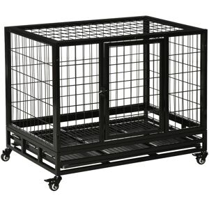 Ideal for both puppies and adult dogs, the PawHut dog crate offers exceptional convenience. Use the metal dog crate for anything from potty training or house training to regulate house rules and boundaries-or simply as a safe, secure place for your pet to rest and relax. The steel cage includes strong welds at stress points and strong latch on the door. The durable powder coated finish is also rust-resistant. Goal is to keep your pets happy and healthy, while proving accessibility and easy cleaning for you. Specifications: • Material Used: Metal • Colour: Black • Special Size: Large • Product Dimension: 109L x 76W x 81Hcm • Flat Pack: YES • Assembly Required: YES • Other Key Info: Door Size: 42L x 61Hcm • Custom Label: D02-021 Features: • Sturdy metal construction with powder coating finish that is also rust-resistant • Clean up is easy with this cage because of its grated floor with tray • Casters at the bottom of the cage allow for easy movement • Designed with mini dividers (5 cm