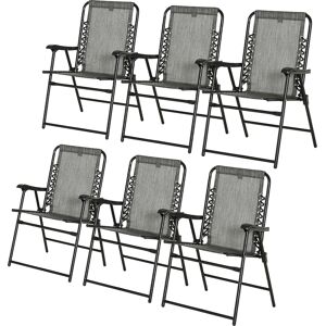 This six-piece outdoor folding chair set from Outsunny is great for any gathering, both indoor and outdoor. The garden chair frames are made from powder coated steel for a strong, supportive structure. Mesh fabric seat holds your body comfortably, the high back and armrests give you support. Lightweight and foldable, each chair is easy to carry and store. Spend no time assembling; sit back and relax!Features:Six-part set: sit and relax with companyPowder coated steel frames are strong and supportive, with lightly-protective anti-slip foot padsFoldable chairs are easy to carry and storeFabric seats hold you comfortablyNo assembly required