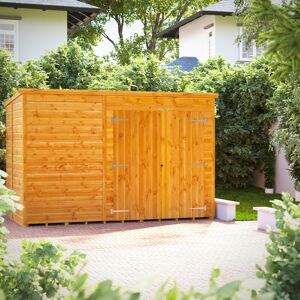 Designed for easy self-assembly, the 10x6 Power Premium Pent Double Door Garden Shed can be installed according to your preferences, with the flexibility to position the door and windows (if applicable) wherever you desire. The door can be effortlessly placed on any side of the building during assembly, granting you full control over its layout. Crafted to premium standards, this shed boasts features like a 5-pin cylinder lock, robust 58x44mm framing that can double up to 58x88mm, and toughened safety glass (if ordered with windows). Each structure is constructed from high-grade timber responsibly sourced from forests, treated with pressure to enhance resistance against decay, insects, and the elements. Furthermore, our proprietary wood preserver formula, enriched with a wax additive, ensures long-lasting protection, allowing you to enjoy your garden building for up to a year without the need for re-treatment. POWERSHEDS