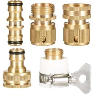 Because it is made of brass, it is durable, weather-resistant, and rust-proof. It won't break as easily as plastic and will last longer. Made of brass, it is durable, weather-resistant, and rust-proof. It won't break as easily as plastic and will last longer. The mixer tap connector fits most round and oval taps; its inner plug can be pulled out with a maximum diameter of 22 mm. A rubber gasket fits securely around most round and oval taps, ensuring a leak-free connection. The tap connector can be split into two parts. When the two parts are combined, the connector fits a 1/2-inch tap. When the cap is unscrewed, the connector fits a 3/4-inch tap. Stretch or repair garden hoses quickly and efficiently. Standard garden hose connector with 3/4-inch thread, works with your caravan, sprayers, nozzles, etc. Included: 1x hose connector; 1x gun/sprinkler connector; 1x round mixer tap connector; 1x double male brass connector; 1x 2-in-1 threaded tap adapter.
