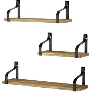 [Decorative and Useful] - These wall shelves can be used as storage shelves, wall-mounted display shelves. Wall shelves not only enhance the aesthetic touch of many contemporary homes, but also as a charming decoration that fits in with many room design styles, adding a to your room. [A SET OF 3 SHELVES] - The floating shelf is designed to install in different orientations and three different sizes available that can be arranged for different design styles as you wish [Quality Material] - Made of Metal+Wood, which is light and strong. It has the advantage of moisture resistance, wrap resistance, wear resistance, and is beautiful in texture. It is suitable for bathroom, bedroom, living room, kitchen, laundry room, home office, toilet, etc. [Solid and Resistant] - Composed of sturdy wooden boards and metal supports of solid construction. You can display any small items as you like, for example candles, frames, collectibles, books, toys, artwork, trophies, small plants, kitchen items and