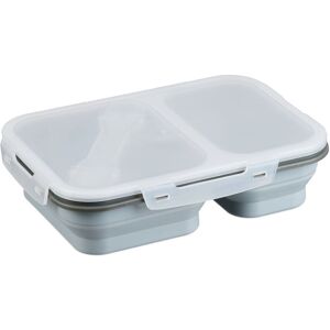 The lunch box is ideal for transporting food for work or school. Whether it's classic sandwiches, crunchy fruit and vegetables or a snack for in between meals - everything stays wonderfully fresh in the airtight lunch box. The Meal Prep Box is also microwave-safe, so you can heat up pre-cooked meals directly in the food box and enjoy them with the cutlery provided. The empty breakfast box can be folded up and stored in your bag to save space. Lunch box in detail - Dimensions H x W x D: approx. 6.5 x 26.5 x 18.5 cm - Volume small compartment: approx. 500 ml - Large compartment volume: approx. 900 ml - Cutlery dimensions H x W: approx. 16.5 x 3 cm - Weight: approx. 400 g - Material: Silicone, plastic (BPA-free) - Colour: Grey Lunch box with cutlery - Ideal lunch box for sandwiches, salad, fruit, vegetables and snacks - Microwave-safe (without lid) - Heat up pre-cooked food directly - 2 compartments for separate storage - food stays fresh - Tight-fitting lid with click lock and sealing