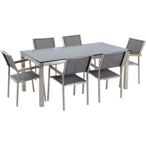 Garden Furniture Set with 6 Folding Chairs. Enjoy al fresco dining with this practical and modern outdoor set, featuring a table and six matching chairs, perfect for patio and garden. Designed with space-saving functionality in mind, both the table and chairs can be easily folded, allowing for effortless storage or transportation, making them ideal for smaller areas or quick trips out of town. The top is made from durable, easy to clean synthetic material, ensuring long-lasting functionality, while sturdy, metal legs provide stability and comfortable experience even on windy days or on uneven ground – no spilled coffee with this table. With its minimalist design and timeless colours, the set fit flawlessly into any contemporary garden décor. Details: Product Type: Dining Set Style: Modern General Color: White, Silver Material Type: Synthetic Material Main Material: Synthetic Material Additional Material: Steel Top Material: Synthetic Material Finish: Powder Coated Seats Up To: 6