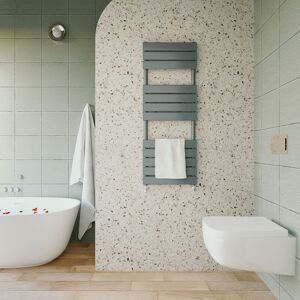 Upgrade your home heating with our high-quality Towel Rail Radiator, designed to combine elegance with functionality. This radiator not only keeps your towels warm and fluffy but also enhances the aesthetic appeal of your bathroom or living space. Unique hot water circulation structure Suitable for all UK heating systems High quality 1.5mm thick mild steel High heat output 15 years warranty 1/2" inlets and outlets Bottom Inlet position and Outlet position Wall-mounted orientation *Note: Brackets and fixings included. *Valves are not included. Technical Information: Model: Towel Rail Radiator Product dimension: 1200 x 450 x 46.5 mm ( H x W x D ) Product weight: 12.95kg Colour: Black Material: Mild steel BTU: 2319 Wtt: 680 Bars: 12 Accreditation: Triple layered finish to exceed 200 hours of neutral acid salt spray testing. Tested to BS & EN442 Complies with ISO9001:2008 regulations. Efficient and uniform heating The radiator can quickly transfer heat to the room through the internal