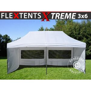 Product specifications: Width: 4.00 m. Length: 4.00 m. Side height: 2,25-2,55 m. Ridge height: 3,40-3,70 m. Roof material: PVC 480 g/m² Sidewalls: PVC 480 g/m² Frame: Aluminium Tubes / fittings: 50x50x1.8 mm + 35x35x1.8 mm + 35x18x1.8 mm Persons: 12-16 Water resistance: 100% Waterproof Folded dimensions: 2,02x0,31x0,31 m. Colour: White Fire safety: BS 5438:1989 2B Certificate UV-resistant: UV-resistant Included: Frame, 1 roof cover, Sidewalls: 3 standard, 1 with zipper. Ground pegs 25 cm, rolling bag. Easy set up in 60 seconds Professional quality Functional design Adjustable height Easy to store Easy to transport Expert advice and service Incl. practical carry bag with wheels (209.5x31.5x31.5 cm) FleXtents is the ultimate pop up gazebo and the no. 1 brand in Europe. It is the result of many years of innovative product development with a focus on light and portable tent solutions in high professional quality. FleXtents sets the standard for functional design and creates the perfect