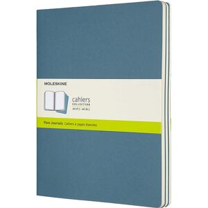 A set of three Moleskine Extra Large Plain Cahier journals with cardboardcovers in Brisk Blue.Each not features 120 70gsm acid-free pages withrounded corners, visible stitching on the spine, and a flap for collectingloose notes.The last 16 pages are perforated and detach easily.