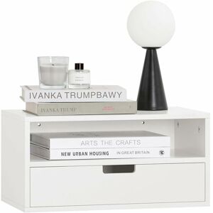 Modern design floating nightstand in white will blend perfectly with any furniture and style, suitable for bedroom, living room and kitchen, especially for bedroom. It is great to be used as a bedside table or sofa side table for you to get accessible to what you need. It offers ample storage space for books, magazines, remote controls, glasses and other small items, keeping your room tidy and organized. A slide-out drawer provides ample storage space for your personal items. The open compartment and the top shelf offers additional storage and display space for you. This floating shelf has a simple construction and offers an easy and practical solution for everyday application. Product Details Material: MDF. Dimensions: W45 x D25 x H22cm. Weight: 5kg. Load capacity: 10kg. Item comes in a flat pack and requires self-assembly. Detailed instructions supplied. The decorative elements are not included in the delivery.