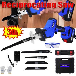 🌳 Reciprocating Saw, 21V Cordless Electric Saw Sabre Saw with Li-Ion Battery and 4 Saw Blades Set, Blade Stroke 0.6" Mini Saw for Wood Metal Plastic PVC Cutting 🌳 Features: 1. Highly efficient cutting, with a stroke of 7/8 inches removes more material. 2. Cordless design, battery-powered, allows you to get rid of annoying cords and space limitations 3. Included 4 Blades to cut wood, tree branches, PVC pipe, metal, etc. 4. 24VF 1.5Ah removable and rechargeable batteries. 5. Double protection switch prevents the reciprocating saw from accidentally opening. 6. Lightweight, the weighs is 1.5 KG, which is 37% lighter than traditional reciprocating saws. 7. One-handed use, Ergonomic rubber anti-slip handle effectively reduces vibration and slip, reducing fatigue from long working hours. 8. LED Light to illuminate the surface of the workpiece during cutting, enhancing visibility in dark environments. 🌳 Specification: Power: 680w Voltage: 21V Battery:1500mah batteries No Load Speed: 0-3000