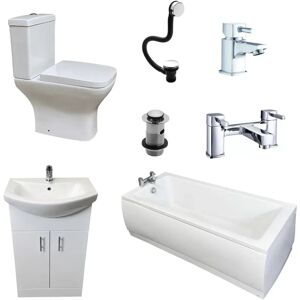 Modern style luxury bathroom suite including Siera square 1700 x 700mm bath, Mediterranean 550 white vanity unit and Sindee short projection toilet Siera Square 1700 x 700mm bath 1700 x 700mm single ended bath Manufactured from lucite acrylic sheet as used by the World's leading manufacturers Includes legs and adjustable feet Bath comes undrilled - to be drilled on site by your plumber Bath sizes approx: Length: 1700mm Width: 700mm Internal length: 1180mm Internal width: 420mm Internal height: 370mm Internal height to overflow centre: 320mm Including styrene 1700mm bath front panel Does NOT include bath end panel Mediterranean 550mm White Gloss Vanity Unit & Basin 550mm vanity unit White gloss finish Rigid built - ready assembled Includes 1 tap hole high quality ceramic basin Soft close doors Ideal for creating a bit of extra storage With internal shelf Chrome finish handles Sizes approx: Width: 550mm Depth: 440mm Height: 860mm Sindee Short Projection Rimless Toilet & Soft Close Seat