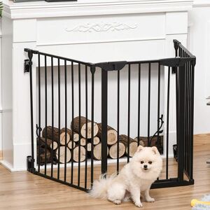 One door with lock: Easy to let your pet in and out - as well as you. Top catch so the door stays shut, pets can't easily escape. Four panels with hinges: Easy to fix into different shapes and sizes - suitable for different sized doors, staircases and similar areas. Can also be folded for storage. Wooden structure: Naturally tough and sturdy - made to last. Two feet on the bottom for balance. Suitable for small and medium dogs, no taller than 50cm PawHut Finish: Grey