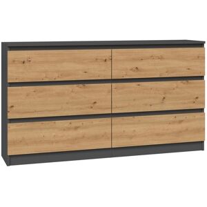 The Aster six-drawer chest will bring a touch of modernity and harmony to your bedroom. Its material, clean lines and details will blend in perfectly with your interior. Its melamine-coated particleboard structure is highly durable and has a trendy finish. HIGHLIGHTS: 6 pull-out drawers Modern handleless fronts PVC edges Functional and elegant Large storage capacity Solid, high-quality structure TECHNICAL SPECIFICATIONS: Dimensions: 138x77x40 cm Structure in 16mm melamine-coated chipboard Scratch and moisture resistant Easy to assemble Made in Europe Easy to clean