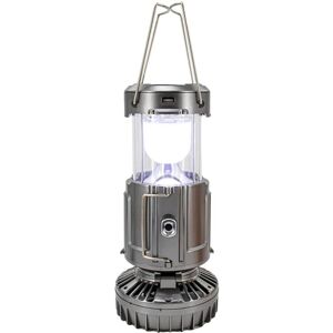 SOLAR POWERED LANTERN & FAN WITH MULTIPLE HANGING OPTIONS: Our Solar Lantern Powered Light & Fan is the perfect accessory for your camping adventures. With its 6 efficient LED bulbs, it provides bright 180 lumens of light that delivers super bright 360 degrees of illumination, and a 90 degree adjustable fan for heat relief. It includes 2 vertical hangings arms and 2 horizontal hanging arms, which allows you to hang the lantern in virtually any position for the perfect light or fan position. This solar-powered lantern is perfect for outdoor activities such as camping, hiking, and emergency preparedness. MULTIPLE CHARGING OPTIONS WITH USB OUT CHARGING STATION: Our Solar Lantern Powered Light & Fan offers multiple charging options for your convenience. When the sun is out, it charges the internal batteries for all-night usage. It also features a power port to charge the internal batteries when you don't have much sun available. Lastly, if you run out of the internal batteries, it